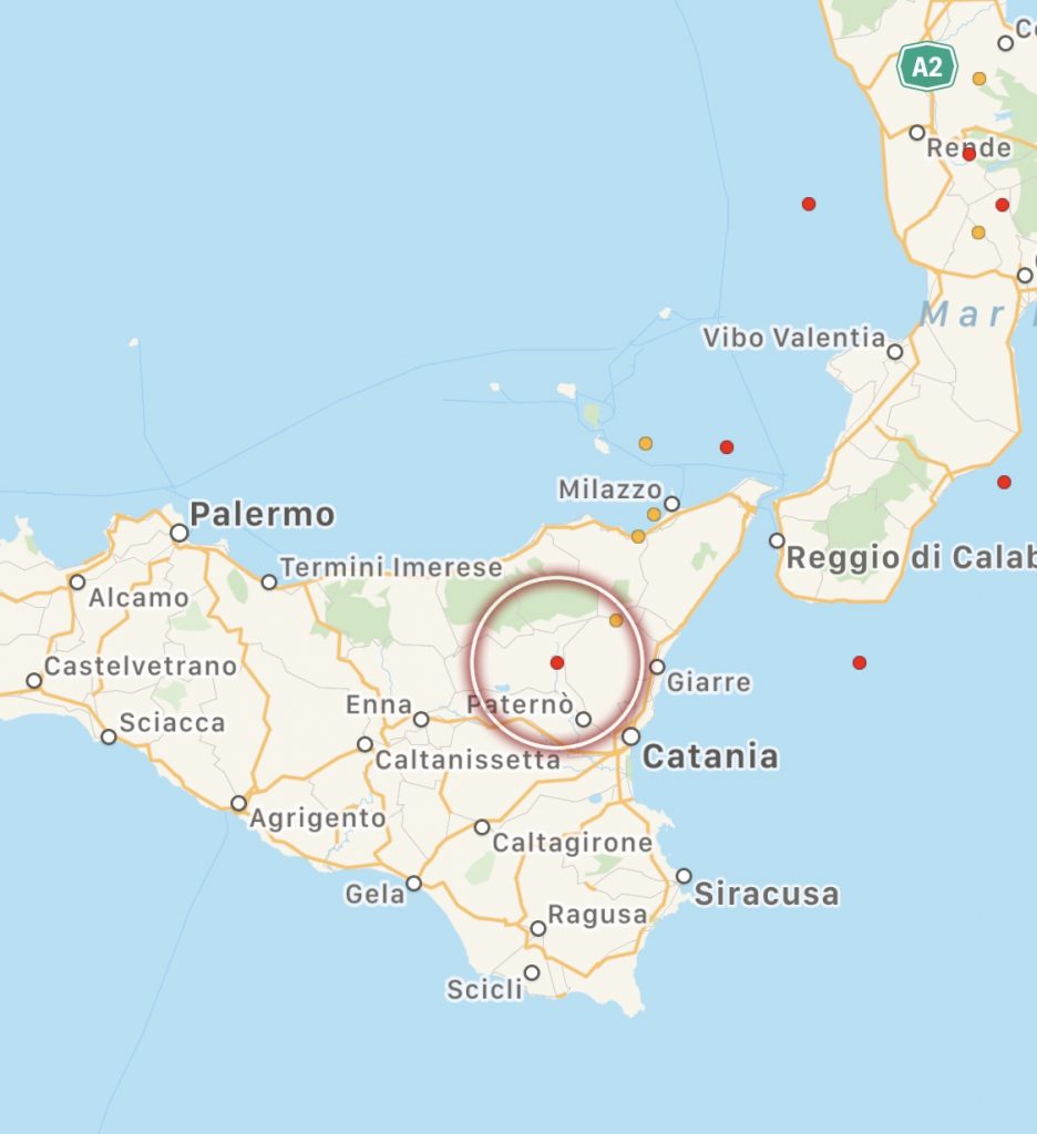 Una scossa di terremoto è stata registrata poco fa sull’Etna. La scossa, di magnitudo 2.8, si è verificata alle ore 20.07. L’epicentro è stato localizzato a Bronte, in provincia di Catania. L’ipocentro a soli 23.7 Km di profondità.
