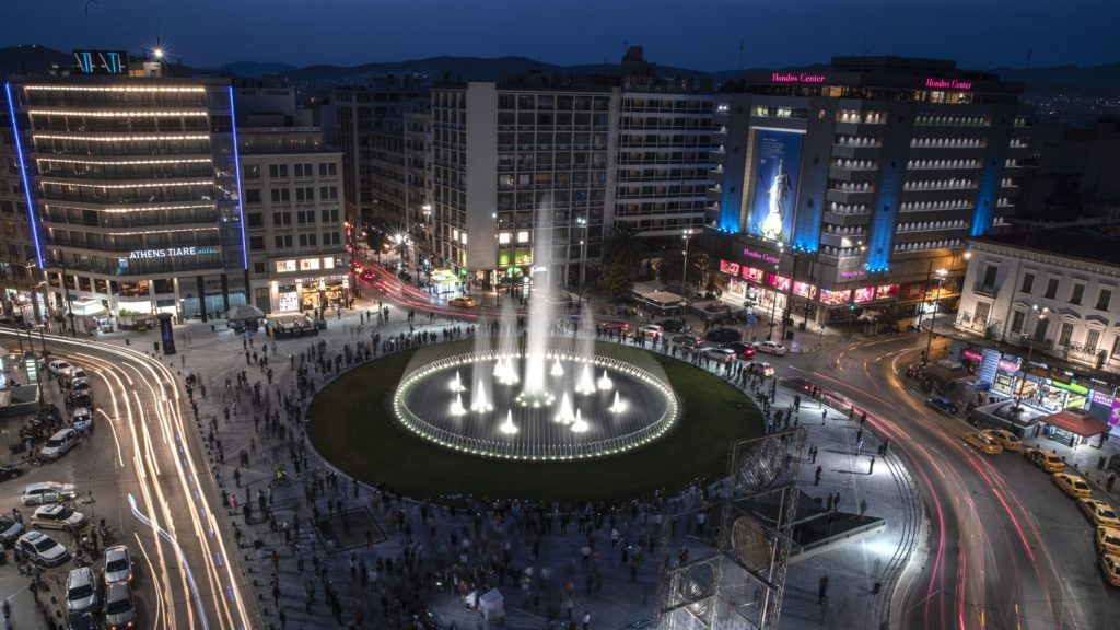 Atene ha riprogettato la sua Piazza Omonoia con la sua caratteristica fontana ristrutturata in uno spettacolo architettonico. Una delle più grandi fontane d’acqua in Europa in termini di volume d’acqua, la fontana, ampia 30 metri, spruzza l’acqua fino a 20 metri di altezza. Ha un totale di 188 getti d’acqua e 11 luci sott’acqua che creano uno spettacolo di luci e colori (vedi foto della gallery scorrevole in alto e video in fondo all’articolo). In occasione della sua inaugurazione, il sindaco di Atene Kostas Bakoyannis ha sottolineato il design innovativo ed ecologico della fontana, affermando che utilizza solo una parte dell’acqua utilizzata dalle normali fontane e che è anche efficiente sotto il profilo energetico.