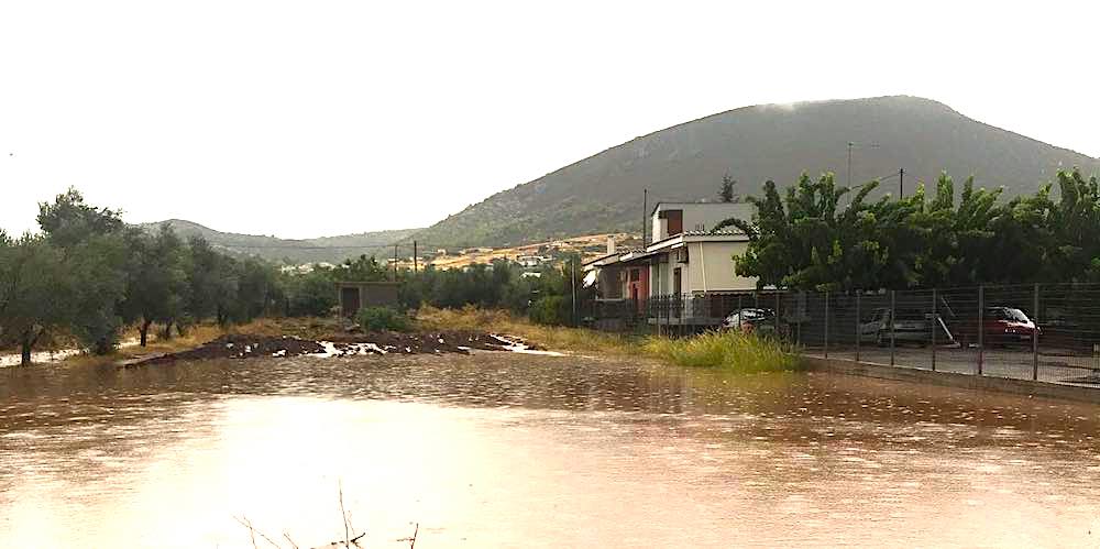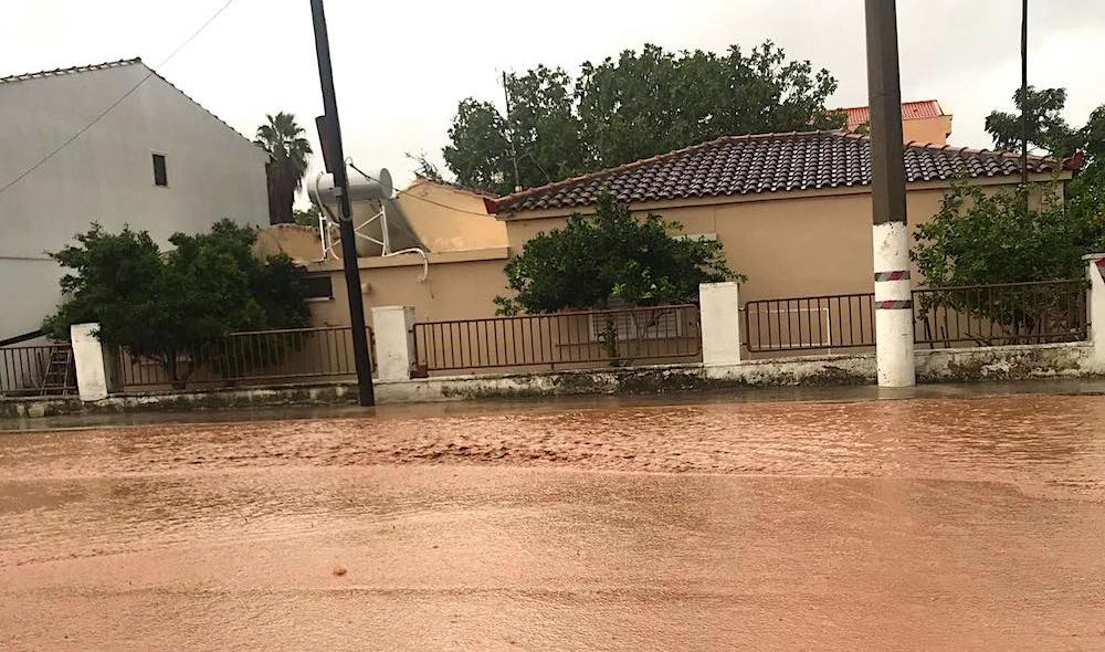 Le forti piogge hanno iniziato a cadere nella notte di sabato 8 agosto, intorno alla mezzanotte, scaricando ingenti quantitativi. Sono caduti 72mm di pioggia a Theologos, 66mm a Vathy, 64mm a Setta, 62mm a Agios Dimitrios.