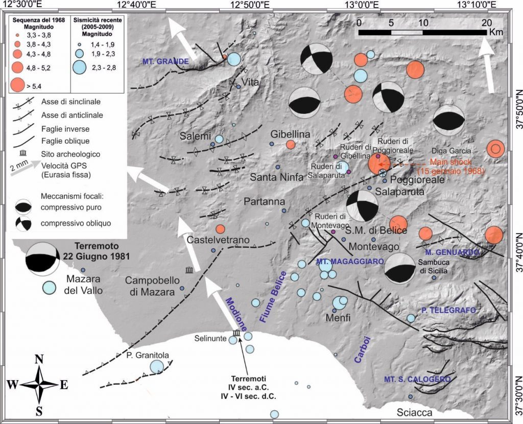 Secondo altri autori (Gasparini et al., 1985; Meletti et al., 2008) la sequenza del 1968 è da attribuire all’attivazione di faglie trascorrenti sinistre orientate N-S, di cui però non è stata riscontrata traccia in affioramento.