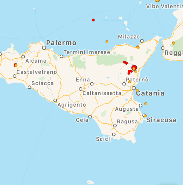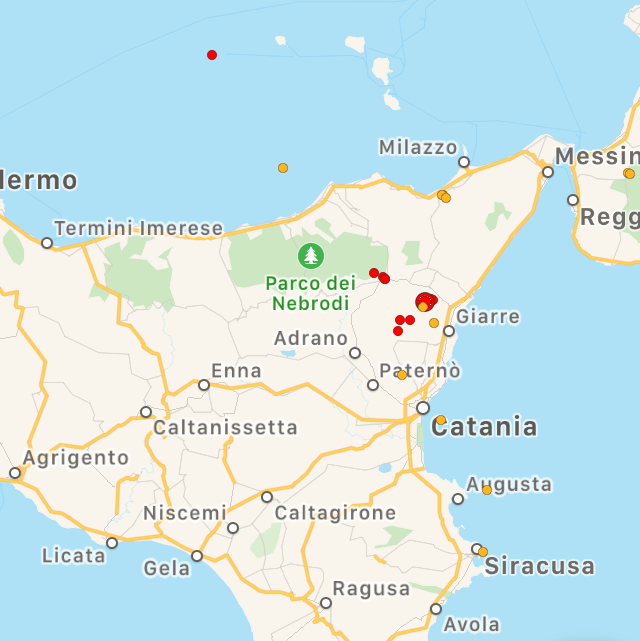 Ore 20:39 – magnitudo 1.2 – epicentro a Linguaglossa – profondità 4,2km