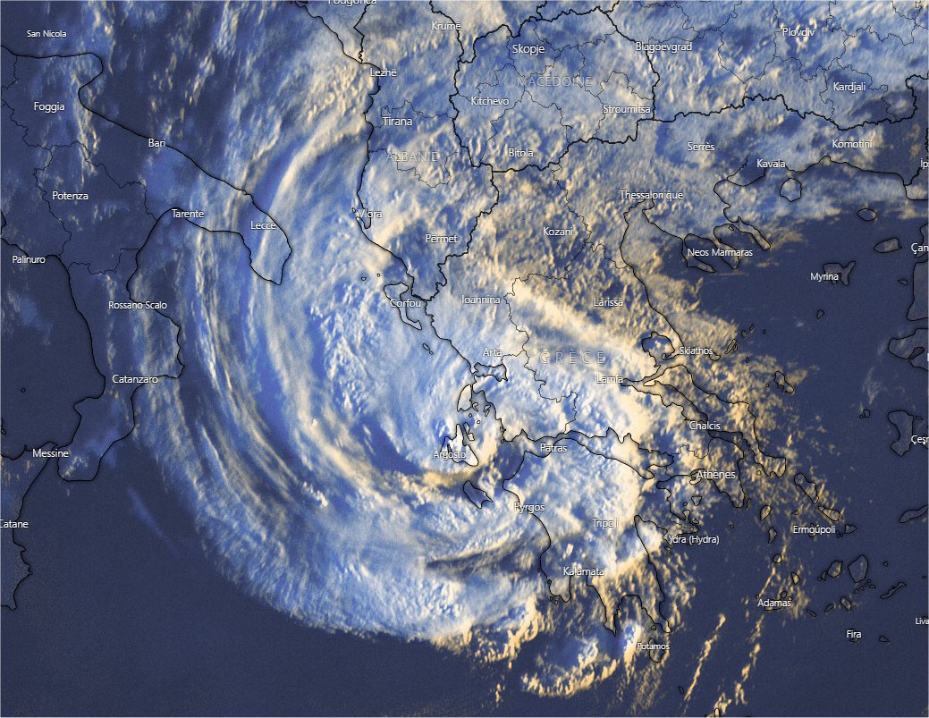 Cionni ha dato avvio al webinar tornando indietro di qualche settimana, ai giorni di metà settembre, quando un Medicane (Uragano Mediterraneo) ha colpito parte di Italia e Grecia. “Un Medicane è un ciclone delle medie latitudini con caratteristiche simili ai cicloni topicali. Rispetto ai fratelli tropicali più grandi, hanno un’estensione orizzontale piccola (pochi chilometri) e intensità al di sotto della categoria 1. Nonostante la piccola estensione, i Medicane possono produrre danni significativi a causa delle combinazioni di venti intensi e forti piogge. Solitamente i Medicane interessano due aree differenti dell’area mediterranea: il Mar Ionio e le Baleari. Il 20 settembre, Ianus ha colpito la costa della Grecia ed è stato un ciclone molto pericoloso. A causa di questo ciclone, 3 persone hanno perso la vita. La città più colpita è stata Karditsa, sferzata da venti di 120km/h che hanno abbattuto linee elettriche e generato enormi onde che hanno colpito le spiagge delle isole ioniche di Cefalonia e Zacinto”, spiega Cionni.