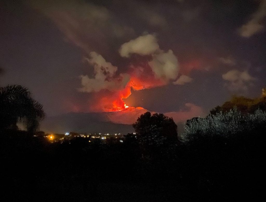E’ iniziata nella notte una forte eruzione dell’Etna: intorno alle 23:30 della notte, infatti, è in corso una forte attività stromboliana dal cratere di sud/est accompagnata da una grande colata di lava sul versante occidentale del cono. Forti boati si odono in tutta l’area etnea, fino a fornazzo. Il tremore vulcanico è in forte aumento, mentre una grande nube di fumo e cenere si è innalzata verso Catania, spinta dal vento di maestrale in direzione sud/est, proprio verso il capoluogo etneo.
