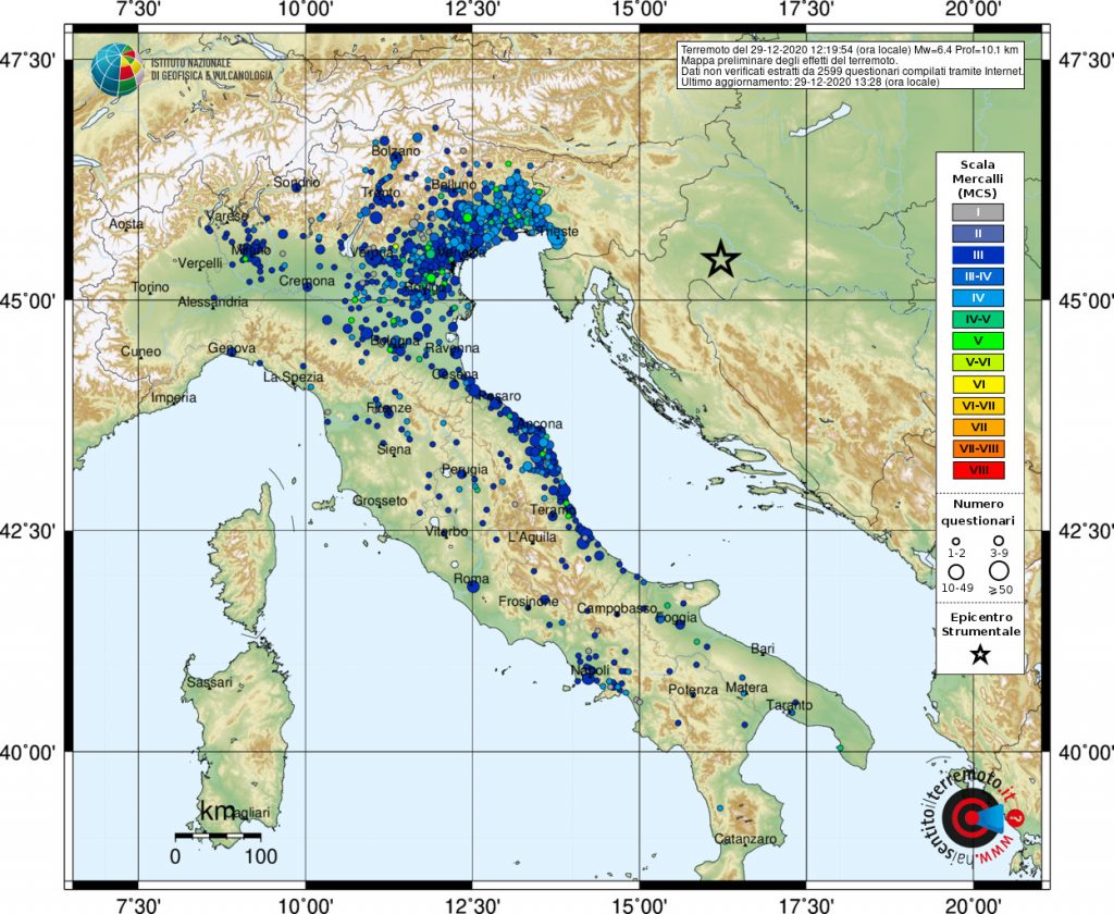 Terremoto magnitudo 6.4 in Croazia, scossa avvertita in quasi tutt’Italia da Trieste e Bolzano alla Calabria. Tanta paura al Nord/Est