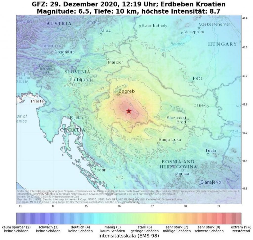 Una violentissima scossa di terremoto di magnitudo 6.4 ha colpito alle 12:19 la Croazia centrale, con epicentro tra Petrinja e Sisak, a Sud di Zagabria, lungo il corso del fiume Kupa, nella stessa area già colpita dai forti terremoti di ieri mattina, che però erano stati di magnitudo 5.2 e 4.8, quindi molto più lievi (ma avevano comunque provocato danni e crolli).