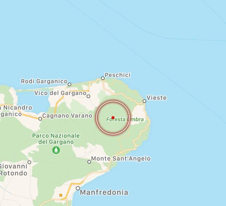 Una scossa di terremoto di magnitudo 2.7 è stata avvertita in Puglia alle 17:42 di oggi pomeriggio La scossa è stata distintamente avvertita dalla popolazione nel Gargano, promontorio della provincia di Foggia. L’epicentro del sisma è stato proprio nel cuore del Gargano e precisamente nella Foresta Umbra, tra Vieste e Monte Sant’Angelo. L’ipocentro della scossa, a 32.7km di profondità, ha determinato una propagazione delle onde sismiche fino a media distanza. Non sono segnalati danni.