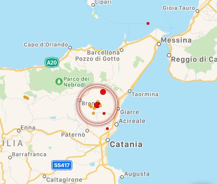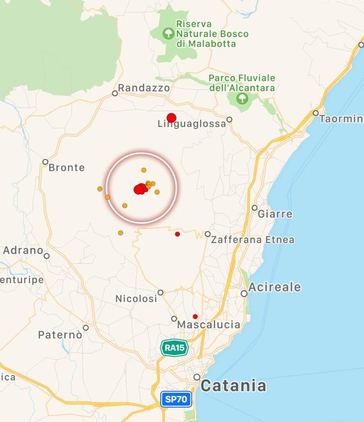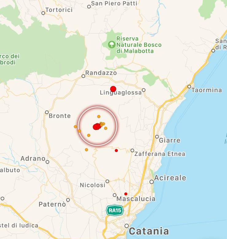 Una scossa di terremoto di magnitudo 3.6 ha colpito l’Etna alle 18:47 di oggi pomeriggio. La scossa, nonostante la magnitudo non indifferente, non è stata avvertita dalla popolazione etnea perchè s’è verificata nell’area sommitale del vulcano, lontano da ogni centro abitato, e si è prodotta ad appena 600 metri di profondità, quindi le onde sismiche non si sono prorogate a distanza dall’area epicentrale. Si tratta di una scossa dalla chiara origine vulcanica: potrebbe essere preannunciare un nuovo parossismo? Lo vedremo nelle prossime ore. Già alle 16:21 del pomeriggio s’era verificata un’altra scossa di magnitudo 3.1 nell’area etnea.