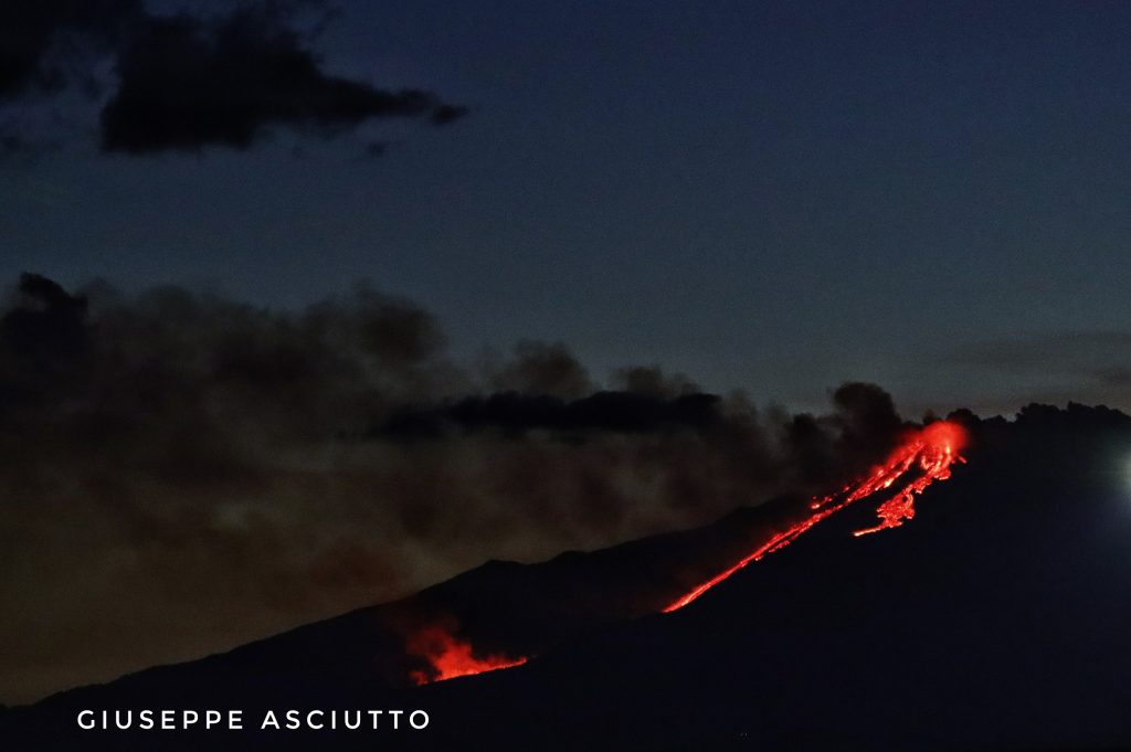 “Fra le ore 16:00 e 17:00 del pomeriggio del 16 febbraio – illustrano i vulcanologi etnei – si è osservato un progressivo aumento dell’attività esplosiva, accompagnato ripetutamente dallo scivolamento di materiale incandescente sul versante orientale del cono. Alle 17:03 è avvenuto un collasso più voluminoso sul fianco orientale del cono, che ha generato un flusso piroclastico che ha percorso circa 1.5 km sulla ripida parete occidentale della Valle del Bove. Pochi minuti dopo l’attività esplosiva al Cratere di Sud-Est è rapidamente aumentata producendo fontane di lava alte diverse centinaia di metri. Simultaneamente, una colata di lava si riversava nell’area interessata dal flusso piroclastico raggiungendo il fondo della Valle del Bove nell’arco di circa 15 minuti. L’attività vulcanica ha prodotto anche diversi flussi lavici più piccoli, che si sono spinti sempre sul versante occidentale della Valle del Bove“.