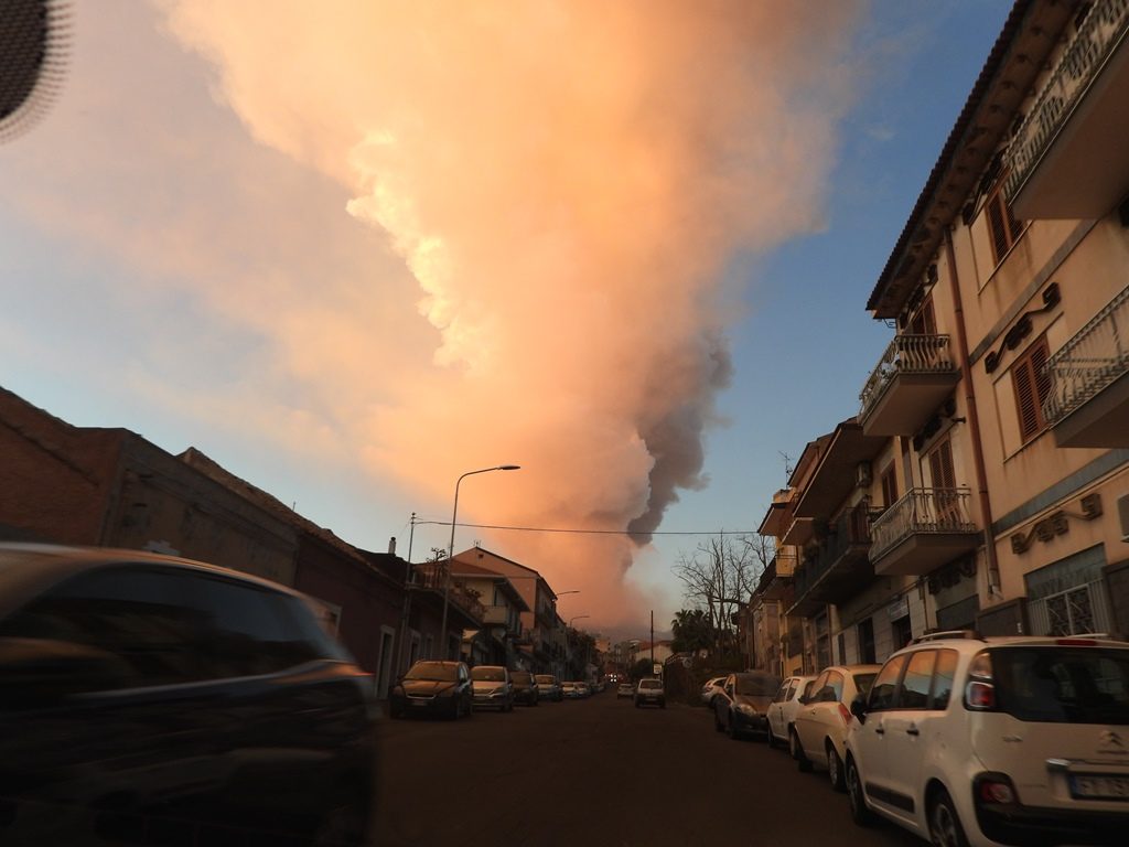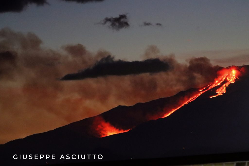 “La colonna eruttiva determinata dal parossismo e carica di cenere e lapilli – proseguono gli esperti INGV – si è alzata di alcuni chilometri sopra la cima del vulcano e, spinta dal vento verso sud, ha causato ricadute del materiale piroclastico sui centri abitati fino a Catania e nel siracusano, a decine di chilometri di distanza dall’Etna. Poco prima delle ore 18:00, la fontana di lava è diminuita rapidamente in altezza e alle ore 18:00 il parossismo era sostanzialmente terminato. Successivamente, per circa mezz’ora, è continuata una debole emissione di cenere mentre le colate di lava mostravano un lento avanzamento. Dalle immagini registrate dalle telecamere di sorveglianza è evidente come il cono di scorie cresciuto sulle bocche orientali del Cratere di Sud-Est sia stato distrutto durante il parossismo“.