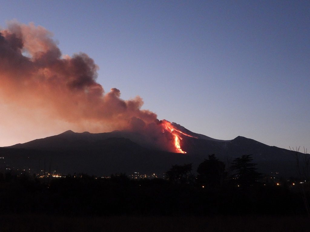 Buonanotte, domani metterò un po’ di video e immagini, per oggi ho dato (sono vulcanologo reperibile in questa settimana, quindi immaginate). Anzi, una foto la metto. Scattata da Santa Venerina dopo la fine dell’attività di fontana di lava.