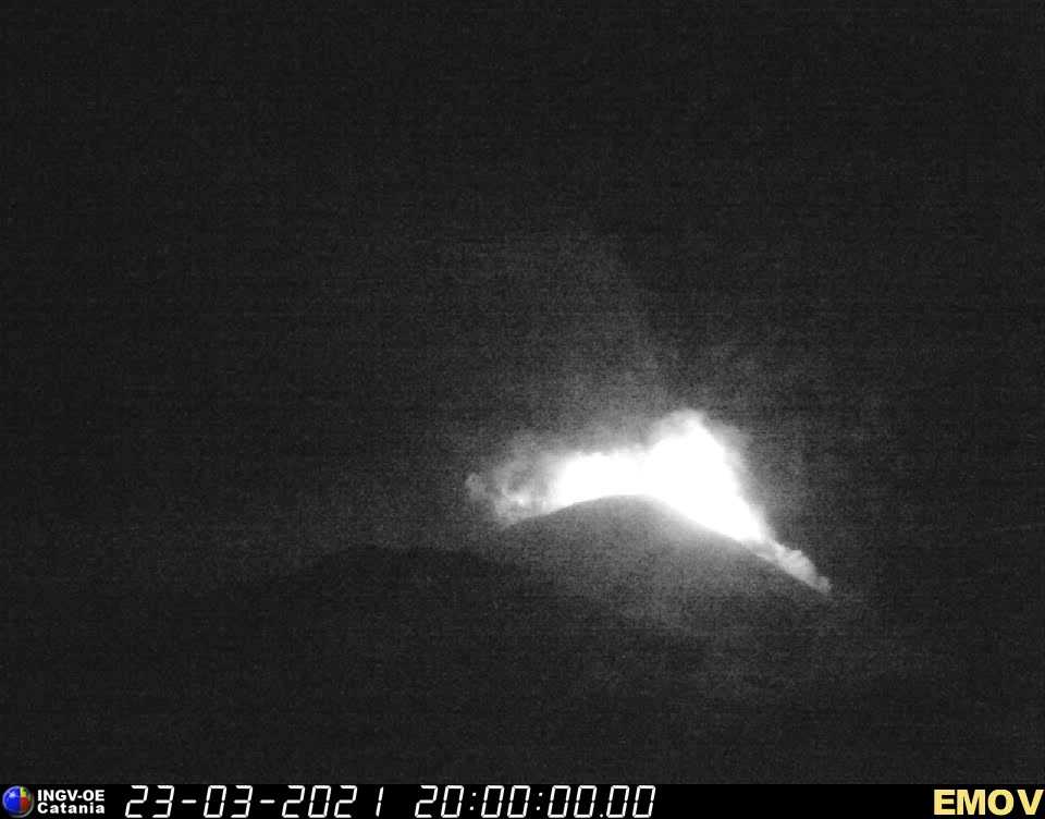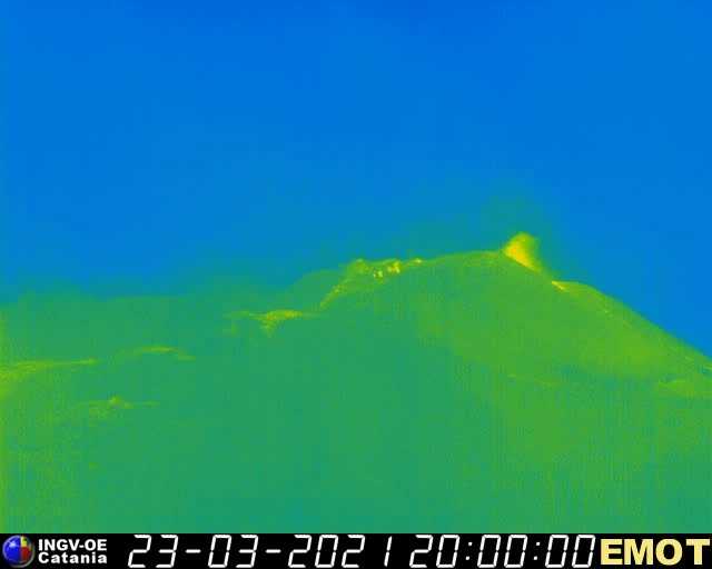 L’Istituto Nazionale di Geofisica e Vulcanologia, Osservatorio Etneo, comunica che dalle ore 20:05 si osserva la ripresa di una debole attività stromboliana al Cratere di Sud-Est. Allo stato attuale l’andamento temporale dell’ampiezza media del tremore si mantiene nell’intervallo dei valori medi. L’attività infrasonica nell’ultima ora mostra un leggero incremento nel numero degli eventi. I segnali di deformazione del suolo provenienti dalle reti di monitoraggio GNSS e Tilt non mostrano variazioni significative.