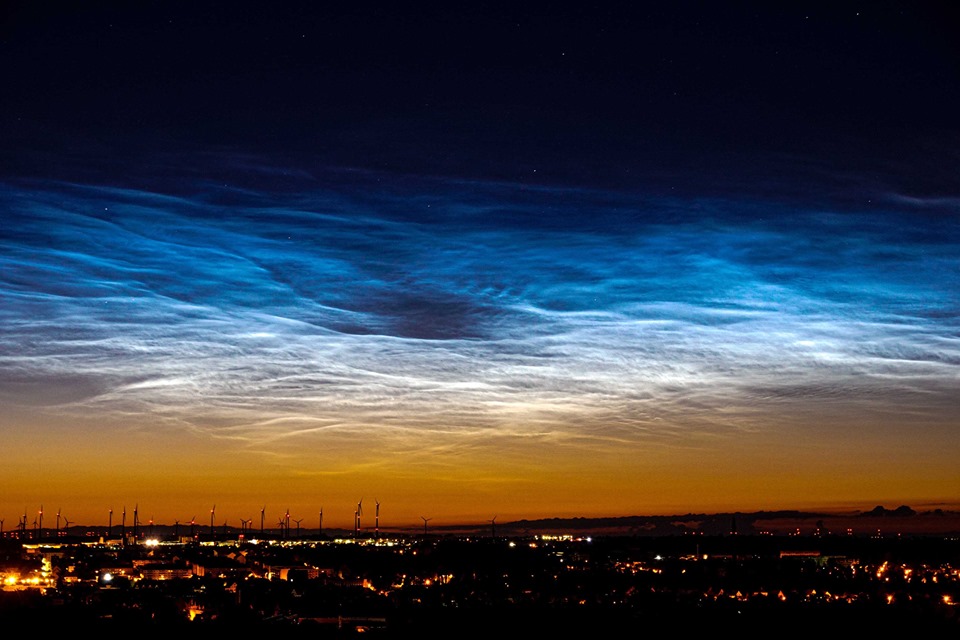 Infine, giugno è anche uno dei pochi mesi in cui le rare nubi nottilucenti possono essere osservate dall’emisfero settentrionale. Questo tipo di nubi si forma a 80km dalla superficie terrestre, molto più in alto rispetto a molte altre nuvole. Le nubi nottilucenti sono chiamate anche “nuvole blu elettrico” a causa della loro colorazione e del modo in cui brillano nel cielo dopo il tramonto o prima dell’alba. Queste nuvole uniche possono essere osservate nel nord dell’emisfero settentrionale nelle settimane intorno al solstizio d’estate. Le nubi nottilucenti si formano intorno alle particelle lasciate dalle meteore. Goccioline d’acqua super fredde congelano sui detriti delle meteore e formano il ghiaccio. Queste nuvole, infatti, sono composte da ghiaccio.