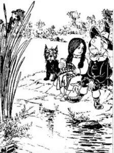 Questi stessi studiosi, se danno un’occhiata ai libri di Dorothy, otterranno ulteriore ispirazione. In Dorothy e il Mago di Oz (1908) Dorothy si arrampica su di una montagna a forma di cono, su scale elicoidali come la vite di un cavatappi. E’ su questa montagna piramidale che incontra i Gargoyles, il signore delle Fate e un Uomo in una Grotta che porta barba e capelli acconciati in trecce. Questo cavernicolo importava fori per Formaggio Svizzero-Americano e per i Donuts (ciambelle con il buco) e inventò il Carotatore ad Assetto Variabile. Egli ne realizzò un gran numero, ma fece l’errore di immagazzinarli in fila, in verticale, il che produsse un buco straordinariamente lungo, che raggiunse le profondità della Terra. Appena si sporse per vedere il fondo, vi precipitò. Jim, il cavallo da calesse di Dorothy, con saggezza, ma impropriamente, osservò “La gente non cade nel centro della terra, per poi tornare indietro a raccontare le sue avventure – non nella vita reale”. Anche questo libro, il secondo di Dorothy, sembra rifarsi al Purgatorio, secondo libro della Commedia di Dante. L’Uomo della Caverna è in possesso dell’unica teoria conosciuta in grado di spiegare l’origine dei lunghi tubi diretti al centro della Terra. In tutte le altre storie, tubi e pennacchi appaiono proprio come messi lì da Plutone o Hermes, per confonderci.