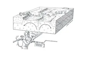 Arthur Holmes si è opposto a Jeffreys e ha lavorato per sviluppare una teoria della deriva che sarebbe compatibile con la geofisica e con la fisica. Holmes pensava che i movimenti laterali dei continenti potevano fornire un mezzo per scaricare il calore accumulato sotto di loro dalla radioattività e dalle correnti di convezione ed elaborò l’ipotesi della corrente di convezione. L’idea che del materiale si riscaldi, risalga, circoli, si raffreddi e scenda – formando correnti di convezione analoghe a quelle dell’atmosfera o di una teiera – non era nuova, ma fu ulteriormente sviluppata. I continenti riscalderebbero il mantello e cavalcherebbero queste correnti gigantesche. Negli anni Trenta l’ipotesi delle correnti di convezione fu posta su una solida base matematica da Anton Hales e Chaim Pekeris, i quali, entrambi, ironia della sorte, lavoravano con Sir Harold Jeffreys a Cambridge. L’articolo scientifico di Pekeris è particolarmente interessante, in quanto sostiene che ciò che controlla la convezione del mantello è la radioattività nei continenti, non il calore proveniente dal nucleo. I continenti controllano la convezione dall’alto, proprio come fanno i cubetti di ghiaccio in un Gin Tonic.