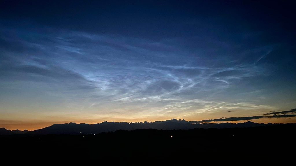 Questo tipo di nubi passa inosservato per il resto dell’anno ma è più visibile nell’emisfero settentrionale intorno al solstizio d’estate, che quest’anno è caduto il 21 giugno. Le nubi nottilucenti, a volte chiamate nuvole blu elettrico a causa del loro colore, sono un tipo di nubi visibile ad occhio nudo solo per poche settimane all’anno intorno al solstizio d’estate, quando le condizioni meteorologiche e l’angolazione del sole sono ideali.