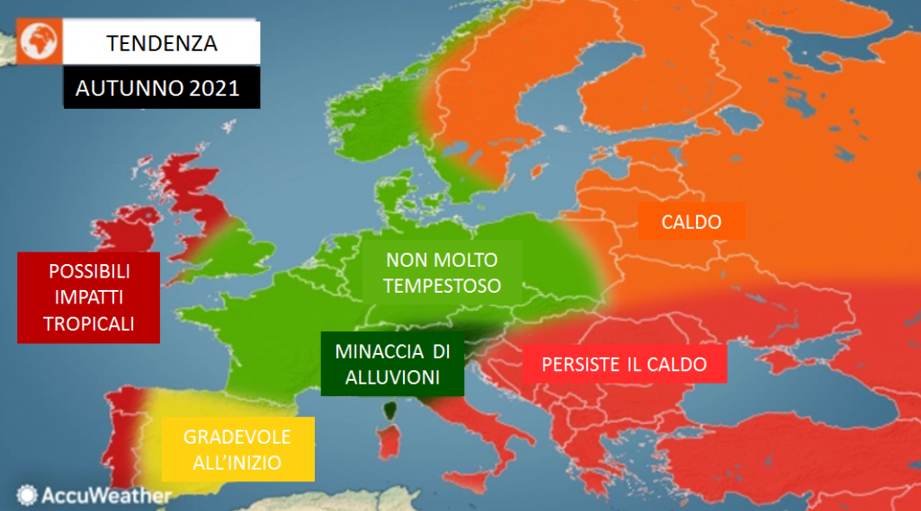 L’estate 2021 è stata disastrosa dal punto di vista meteorologico in Europa. I settori centro-settentrionali del continente hanno dovuto fare i conti con alluvioni storiche e mortali. Più a sud, super caldo e incendi distruttivi hanno contrassegnato la stagione nell’Europa sudorientale. Ora AccuWeather, autorevole centro meteorologico statunitense, ha appena rilasciato le sue previsioni per l’autunno 2021.