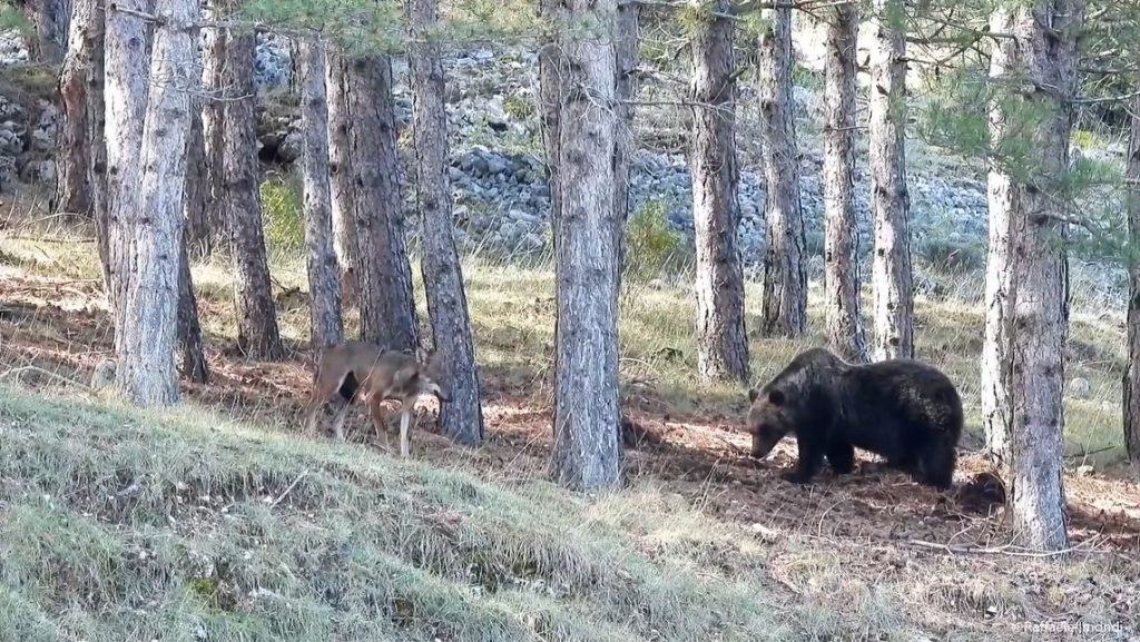 Da anni, Raffaele Imondi riprende lupi ed orsi, con passione ed etica, ma una delle scene che ha ripreso ha davvero dello spettacolare. Nel video realizzato da Imondi e che trovate in fondo all’articolo, si vedono un orso e un lupo nei boschi dell’Abruzzo. Si tratta di animali già difficili da avvistare singolarmente, a maggior ragione insieme e mentre interagiscono tra loro.