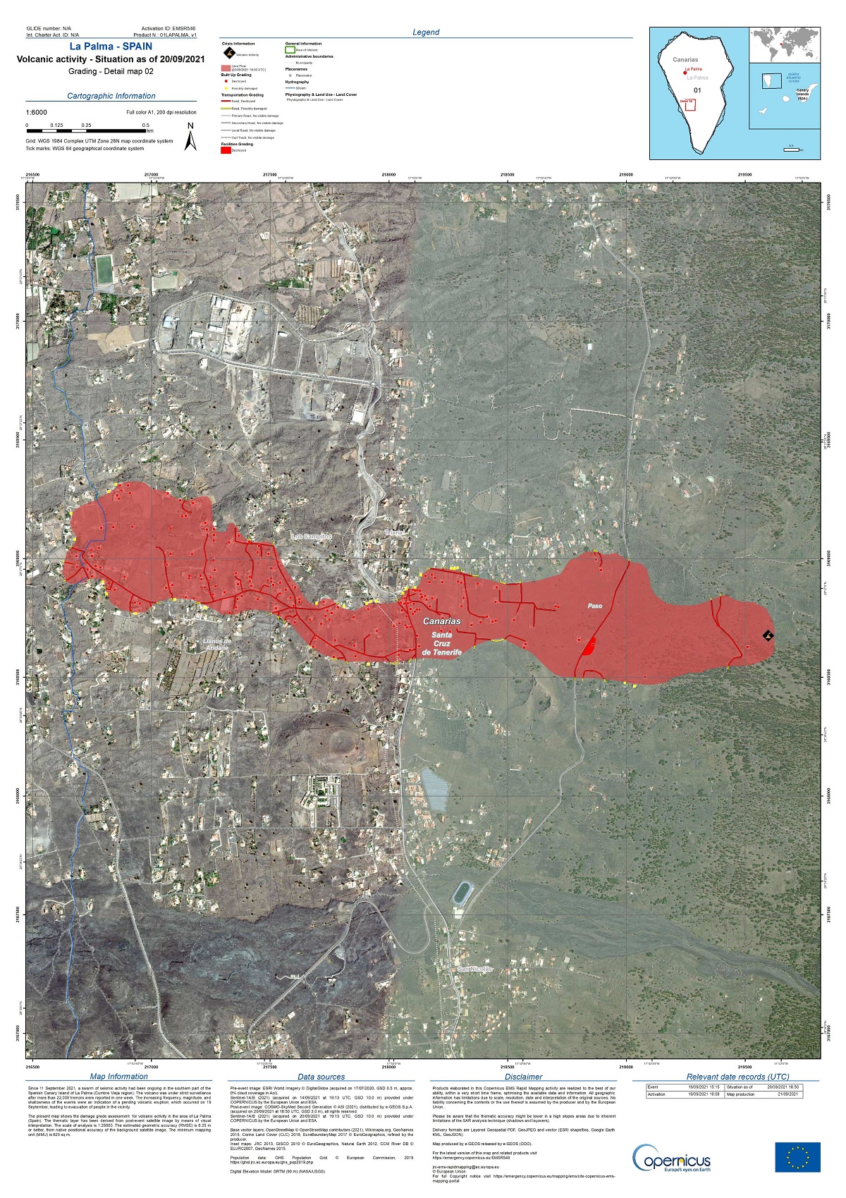Il calcolo è stato realizzato dal programma di emergenza via satellite dell’Unione Europea, Copernicus, che stamane ha pubblicato un’immagine catturata dal satellite Sentinel 2 e che rifletteva la situazione alle 20:50 di ieri.
