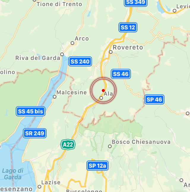 Un terremoto si è verificato pochi minuti fa in Trentino Alto Adige. La scossa di magnitudo 2.2 è avvenuta alle ore 22.41. L’evento ha avuto epicentro ad Ala, vicino al confine con il Veneto, e profondità di 12km.