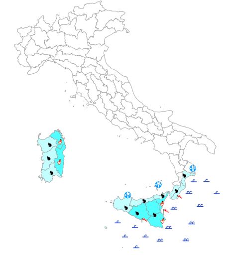 – sparse, anche a carattere di rovescio o temporale, sulla Sardegna centro-orientale e sulla Sicilia sud-orientale, con quantitativi cumulati da deboli a localmente moderati;