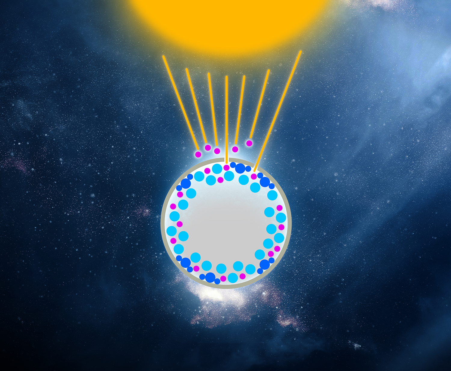L’acqua nei grani è stata prodotta dall’erosione spaziale, un processo mediante il quale le particelle cariche del Sole, note come vento solare, hanno alterato la composizione chimica dei grani per produrre molecole d’acqua.