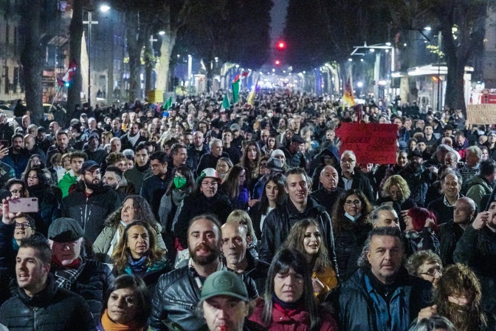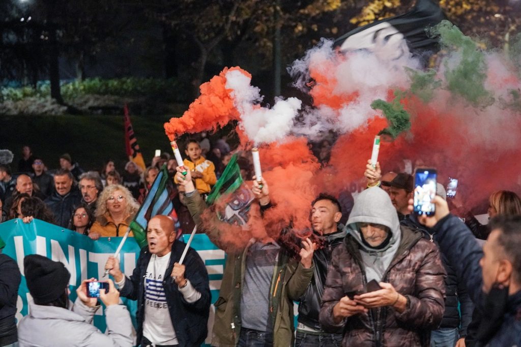 Da Nord a Sud, gli scenari sono stati simili. I gruppi della sinistra radicale, convocati a Napoli dal “Movimento 7 Novembre” per una manifestazione “per il lavoro” e contro l’inchiesta per associazione a delinquere nei confronti di alcuni aderenti al Movimento, sfilano in corteo con un migliaio di persone, 5mila secondo gli organizzatori. Ed è finito così in parità il braccio di ferro con le forze dell’ordine che avevano inizialmente vietato il corteo, in base alle nuove norme del Viminale. Il corteo si è tenuto da piazza Garibaldi alla Prefettura, meta tradizionale di tutte le manifestazioni, ma senza violare la “zona rossa” istituita dalla Questura che ha blindato la zona di Santa Lucia, per impedire ai manifestanti di raggiungere la sede della Giunta regionale . Qualche momento di tensione si è avuto al passaggio davanti all’edificio della Questura, in via Medina, dove sono stati accessi fumogeni rossi e fuochi di artificio, ma non c’è stato nessun contatto tra polizia e manifestanti. All’appello del “7 Novembre”, espressione del Centro sociale Iskra, hanno risposto il “Si Cobas” con delegazioni anche da Modena, Piacenza e Milano, il gruppo più folto del corteo, un comitato di “lotta per la casa” di Roma, i disoccupati del “Movimento di lotta per il lavoro ” e dei “Banchi Nuovi” e gli anarchici. In piazza anche la leader dei “No Tav”, Nicoletta Dosio. “Non siamo caduti nel tranello – ha detto uno degli organizzatori, a conclusione del corteo, riferendosi a chi avrebbe voluto una linea più folta di no Green pass e vaccini, che secondo gli organizzatori sono rimasti solo sullo sfondo. In realtà, però, così non è stato perché anche i disoccupati del ‘Movimento di lotta per il lavoro’ hanno distribuito volantini nel quale il Green pass viene definito uno strumento di controllo sociale e a tratti, durante il corteo, tra slogan anni ’70, come “pagherete caro, pagherete tutto” è echeggiato il coro caro ai no pass e no vax “la gente come noi non molla mai“.