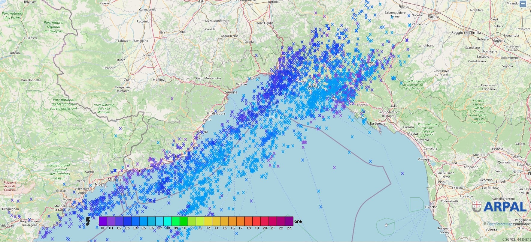 “Precipitazioni temporalesche d’intensità anche moderata, accompagnate da locali grandinate, hanno interessato nella notte la Liguria, soprattutto il centro Levante,” ha spiegato Arpal nell’ultimo aggiornamento. “La cumulata oraria massima, 22.6 millimetri, si registra a Reppia (Né, Genova) dove sono caduti 5.2 millimetri in 5 minuti e una cumulata totale in 12 ore (la massima finora) di 56.4. Sempre in un’ora 20 millimetri a Cavi di Lavagna (Genova), 18.4 a La Macchia (Varese Ligure, La Spezia), 18.2 a Genova Centro Funzionale“. “Le precipitazioni insistono ancora sul centro ma soprattutto sul Levante: nell’ultima ora 15.6 millimetri (intensità moderata) a Panesi (Cogorno, Genova) mentre qualche pioggia, debole, si registra anche a cavallo tra imperiese e savonese. Venti forti con raffiche di burrasca o burrasca forte in particolari sui rilievi: toccati i 135.5 km/h a Casoni di Suvero (Zignago, La Spezia), 124.6 al Lago di Giacopiane (Genova), 113 a Fontana Fresca (Sori, Genova)“.