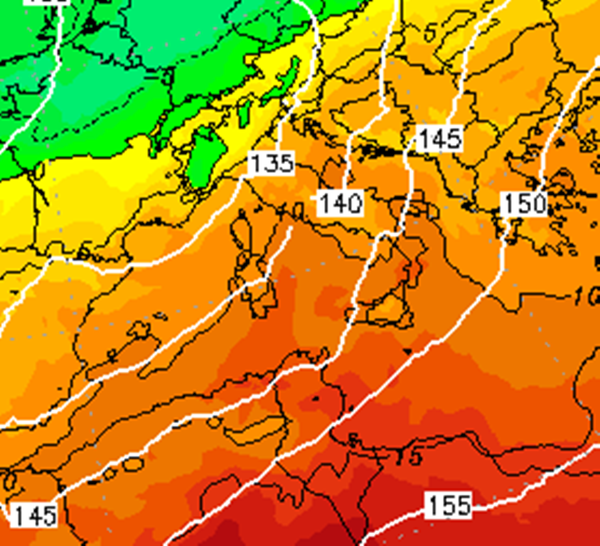 L’aria calda, però, scorre impetuosamente alle alte quote spinta dai forti venti di scirocco e determina un clamoroso rialzo termico anche nelle aree più esposte dello stesso Nord, ove abbiamo addirittura +15°C a Trieste e La Spezia. Proprio questa situazione sta determinando il terribile fenomeno del gelicidio tra basso Piemonte e zone interne della Liguria.