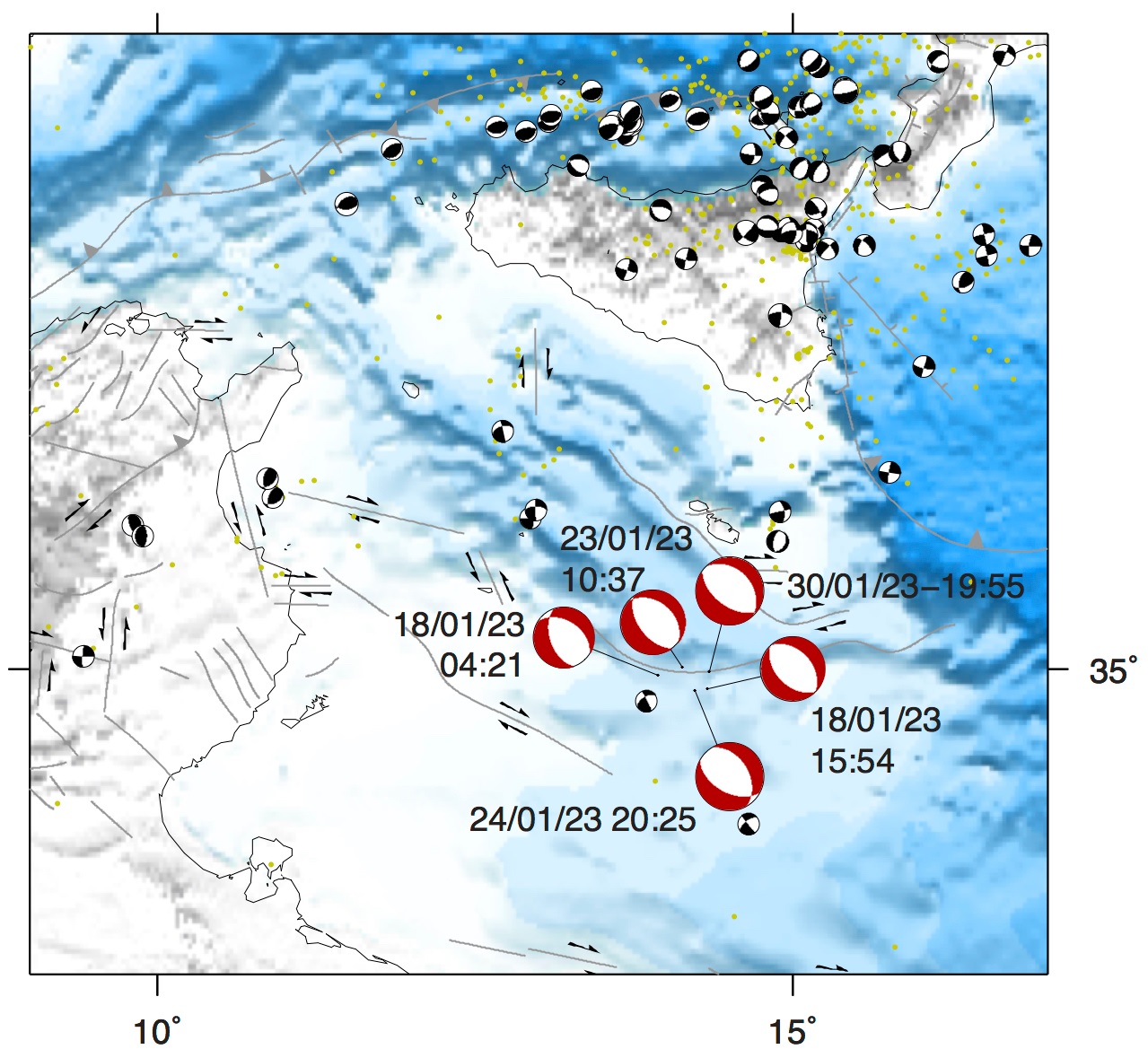 “Questo evento si è verificato in un’area dove dal 18 gennaio 2023 si è attivata una sequenza sismica (Figura 1) che fino ad oggi – 2 marzo 2023 – ha avuto circa 90 eventi con valori di magnitudo compresa tra 2.4 e 5.6[1]. Il terremoto del 30 gennaio 2023 era stato preceduto da 9 terremoti di magnitudo pari o superiore a 4.0, di cui 2 con magnitudo pari o superiore a 5.0, il 23 e 24 gennaio, di magnitudo Ml 5.0 e Mw 5.2 rispettivamente“: a fare il punto sulla sequenza sismica nel Canale di Sicilia è il ricercatore INGV Mimmo Palano, sul blog INGVterremoti.