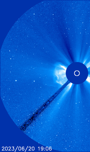 Da allora i coronografi SOHO hanno rilevato una CME mentre emergeva dal sito dell’esplosione. Le emissioni radio solari di tipo II rilevate dall’aeronautica statunitense suggeriscono una velocità di espansione superiore a 1000 km/s.
