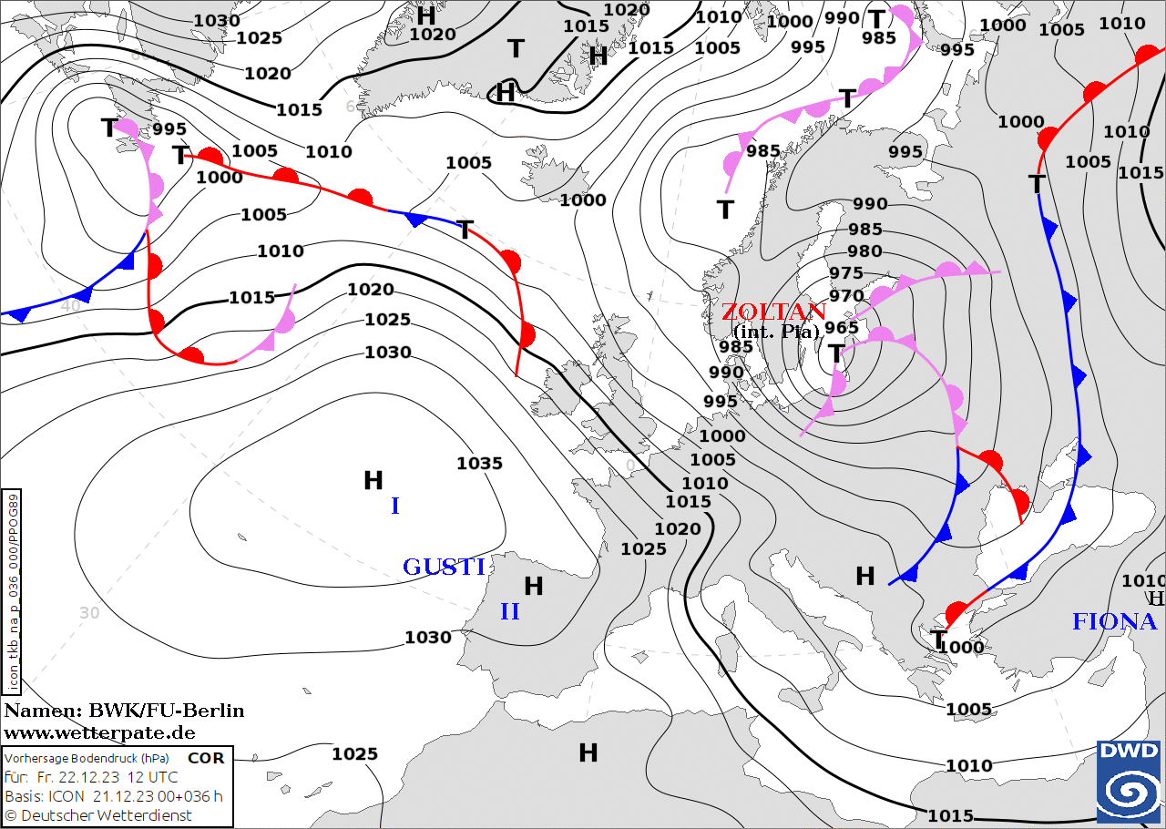 Siamo solo all’inizio della burrasca di maestrale che nelle prossime ore si intensificherà su tutto il Paese: è provocata da un profondo ciclone denominato Zoltan e posizionato sul mar Baltico con minimi di pressione di 965hPa mentre sull’oceano Atlantico abbiamo un poderoso Anticiclone delle Azzorre soprannominato Gusti che sfiora i 1040hPa. Proprio questo stratosferico gradiente barico che si caratterizza per sbalzi enormi sull’Europa centrale (in Francia abbiamo 1030hPa sui Pirenei occidentali mentre al confine con il Belgio siamo già a 1000hPa) alimenta venti impetuosi in tutto il settore Mittel-Europeo, estendendosi anche all’Italia: