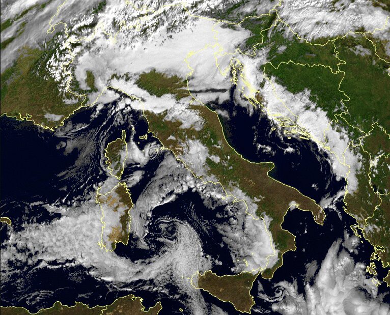 Le immagini satellitari evidenziano chiaramente proprio la presenza di nebbie, nubi basse e foschie lungo la Penisola in queste ore: