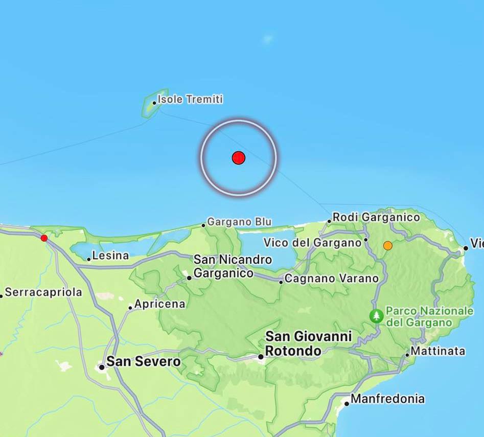 Scossa di magnitudo 3.0 tra il Gargano e le Tremiti