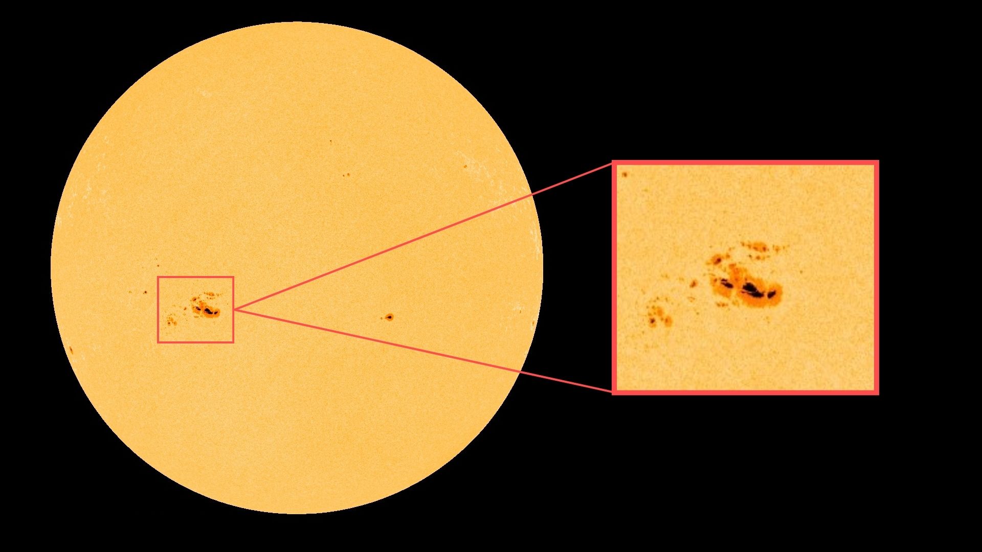 Le macchie solari sono regioni scure e più fredde sulla superficie del Sole che possono generare disturbi come brillamenti solari ed espulsioni di massa coronale (CME), ossia grandi rilasci di plasma e campo magnetico dal Sole. La frequenza e l’intensità delle macchie solari visibili sulla superficie possono essere utilizzate per indicare il livello di attività solare in qualsiasi momento durante il ciclo solare di 11 anni, guidato dal campo magnetico del Sole. Man mano che ci avviciniamo al massimo solare – il tasso di attività più alto – le regioni con macchie solari come AR3576 stanno diventando più frequenti.