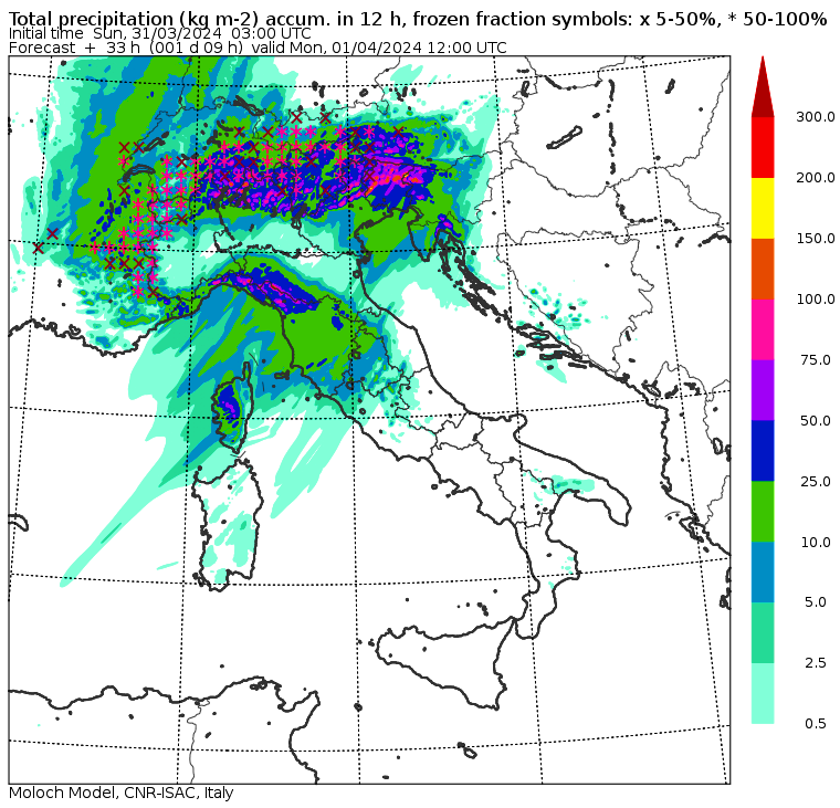Domani, lunedì 1 aprile, nel giorno di Pasquetta, il maltempo si intensificherà ulteriormente. Non solo continuando a flagellare il Nord, ma anche estendendosi al Centro/Sud. In mattinata il clou del maltempo si sposterà al Nord/Est con piogge torrenziali in Friuli Venezia Giulia. Forti nubifragi anche tra Liguria e Toscana. Sarà una Pasquetta di maltempo anche al Centro, con forti piogge sin dal mattino in Toscana, Umbria, alto Lazio e zone interne delle Marche: