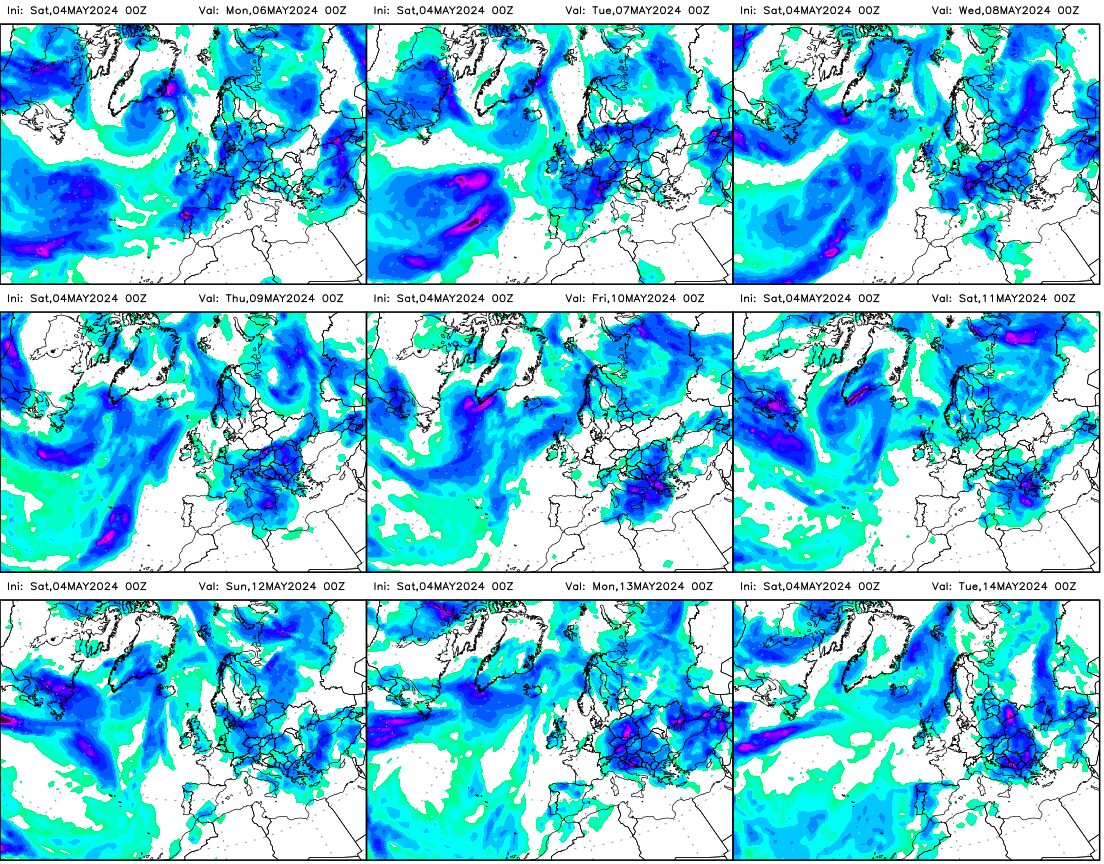 In base a queste mappe, si evince come il maltempo colpirà dapprima in modo molto intenso il Nord Italia, per poi spostarsi al Centro/Sud a metà settimana. Al Nord i fenomeni più estremi si verificheranno lunedì sera e soprattutto martedì 7 maggio; al Centro/Sud invece avremo forti piogge e temporali tra mercoledì 8 e giovedì 9, con una coda venerdì 10 in Puglia, Calabria e Sicilia. Nella prima fase, quando il maltempo colpirà il Nord, al Sud il tempo rimarrà stabile e soleggiato mentre al contrario nella seconda fase, la situazione meteo si ribalterà con forte maltempo al Sud e un deciso miglioramento al Nord.