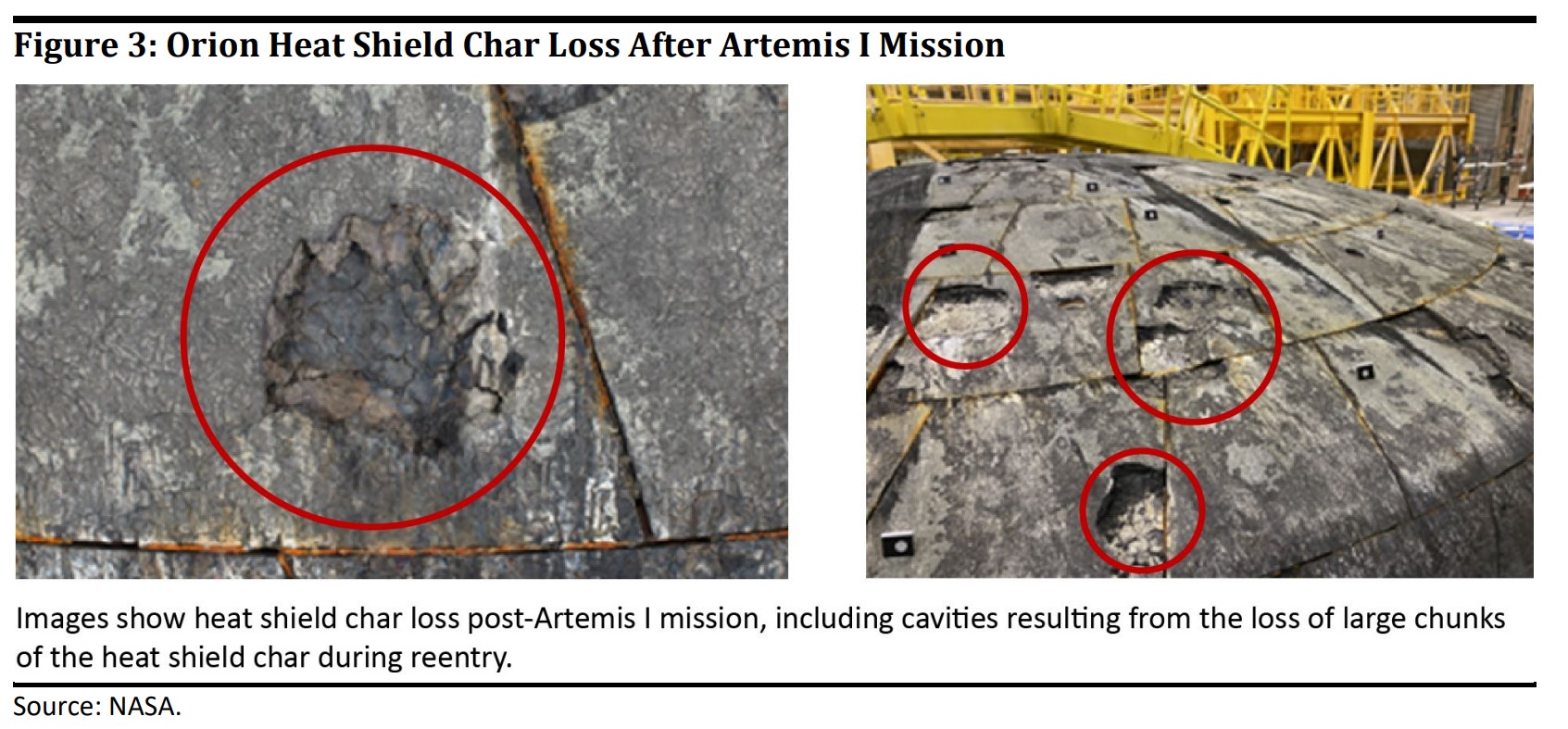 In una teleconferenza del 9 gennaio 2024 che annunciava ritardi nella tabella di marcia del programma Artemis, Amit Kshatriya, vice amministratore associato del programma Moon to Mars della NASA, ha affrontato direttamente questo particolare problema dello scudo termico. “Abbiamo notato la recessione non nominale di alcuni carboncini staccatisi dallo scudo termico, cosa che non ci aspettavamo“, ha detto Kshatriya durante il briefing. “Ora, questo scudo termico è un materiale ablativo – dovrebbe carbonizzare – ma non è quello che ci aspettavamo, con alcuni pezzi di quel materiale carbonizzato che sarebbero stati liberati dal veicolo”.