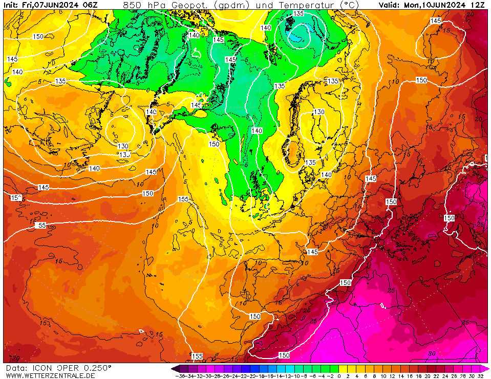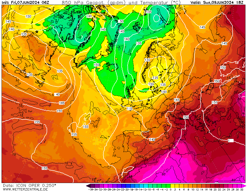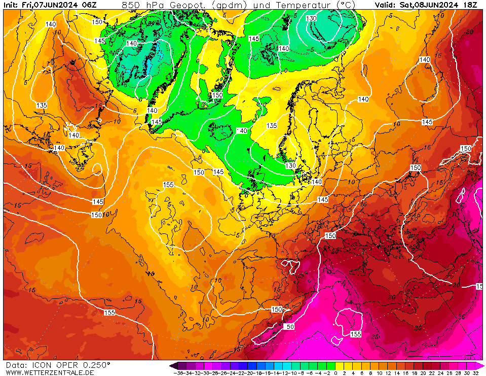 Domani, sabato 8 giugno, il clima rimarrà caldo al Nord e le temperature aumenteranno anche al Centro/Sud, soprattutto in Sardegna, lambita nella sua estremità meridionale da un’isoterma di +25°C ad 850hPa. Sarà l’ultimo giorno di caldo al Centro/Nord, il secondo dopo oggi, prima della brusca sfuriata di maltempo che domenica farà crollare le temperature nuovamente su valori inferiori rispetto alle medie del periodo.