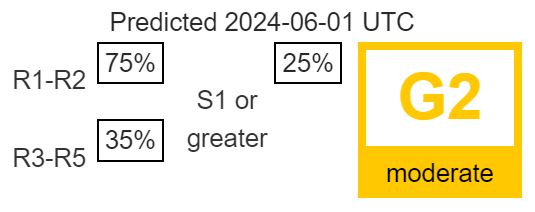 Gli esperti dello Space Weather Prediction Center della NOAA mantengono alta l’attenzione per una possibile tempesta geomagnetica classe G2 che potrebbe colpire il campo magnetico terrestre oggi, 1° giugno. La causa è una espulsione di massa coronale (CME) generata da un brillamento solare di classe X1.4 avvenuto il 29 maggio.