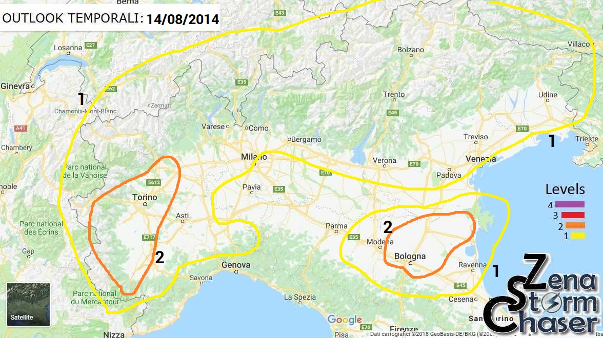 “Instabilità pomeridiana più diffusa sull’Emilia con fenomeni localmente intensi a causa della convergenza tra la brezza marina e i venti provenienti dall’Appennino,” prosegue il bollettino ZenaStormChaser. “Lo scarso getto e quindi shear favorirà anche in questo caso multicelle poco mobili con alto rischio allagamenti. Attenzione sempre ai downburst. Più complicata ma comunque possibile l’attivazione di fenomeni a macchia di leopardo su Veneto e Friuli mentre le aree alpine più colpite saranno quelle dell’alto Adige“.