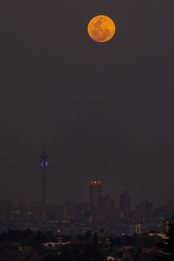 Tornando a parlare di colori, più che blu la Luna appare arancione o addirittura rossa in alcune foto. Come si può notare, il satellite appare più arancione quando è più basso sull’orizzonte. Il colore arancione è dovuto ad un effetto fisico: quando si guarda verso l’orizzonte, si guarda attraverso una maggiore densità dell’atmosfera terrestre rispetto a quando si guarda verso l’alto e questo conferisce alla Luna un colore rossastro-arancione.