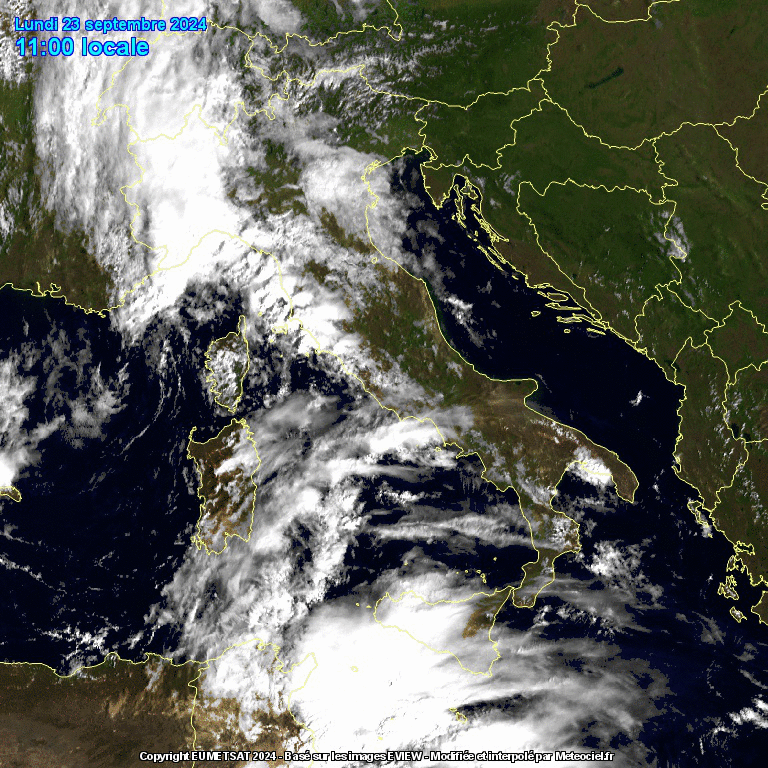 Grandi piogge anche nella Sicilia occidentale, con 43mm a Campobello di Mazara, 33mm a Trapani Birgi, 31mm a Castelvetrano. Impressionanti le ultime immagini satellitari che evidenziano la risalita delle nubi temporalesche al Sud, sul Canale di Sicilia, ma anche al Centro, sul Tirreno, e al Nord, in Liguria: