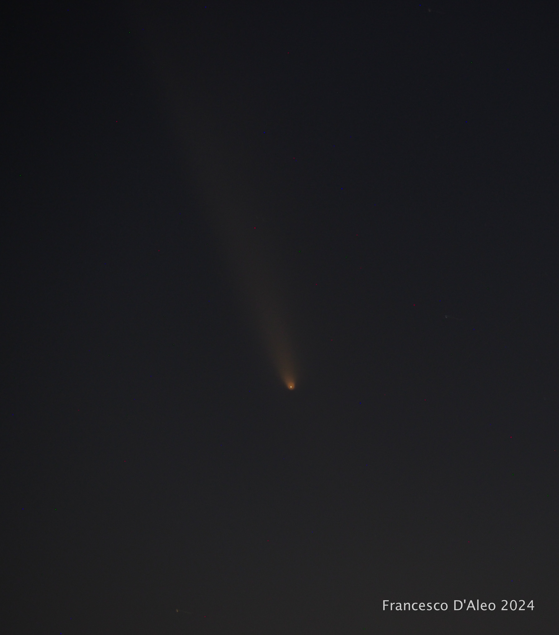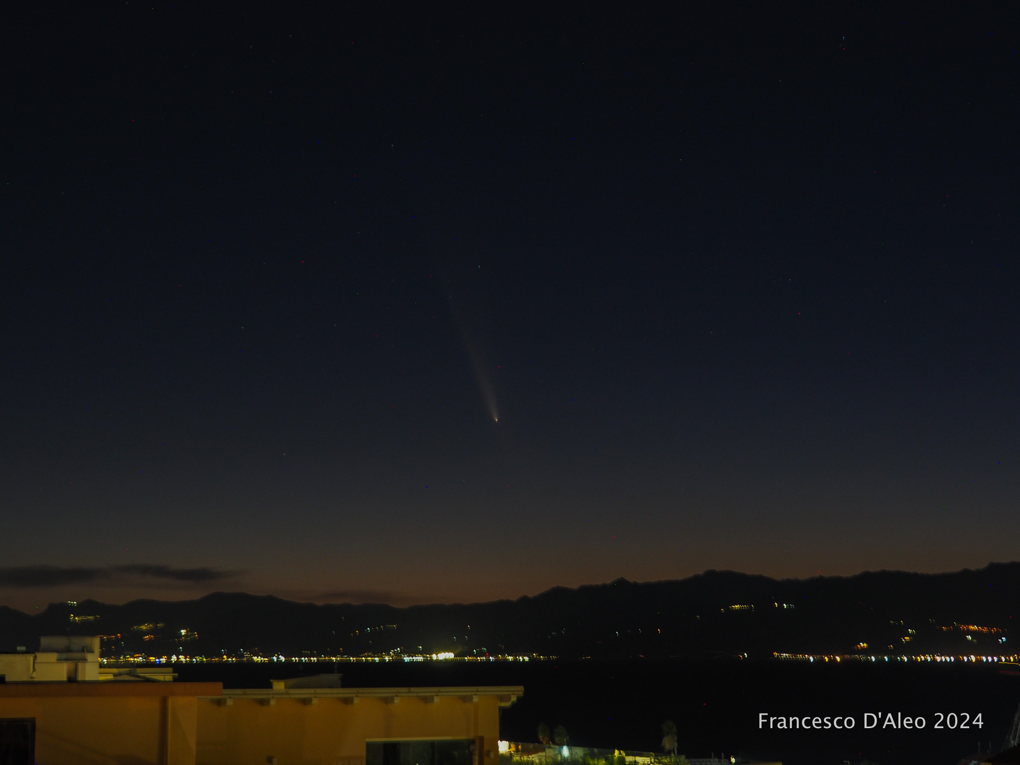 Sempre da Reggio Calabria le bellissime foto di Francesco D’Aleo, che sulla cometa C/2023 A3 Tsuchinshan-ATLAS dice: “Ritornerà tra 26.000 anni quando tutto quello che abbiamo conosciuto non esisterà più; forse, molto probabilmente, non esisterà più la nostra civiltà. Dovrebbe farci riflettere sull’infinità nullità di “quest’atomo opaco del male” e su quello che di più prezioso possediamo: il tempo e le persone che ci vogliono bene. Il resto è niente, gli altri sono niente“.