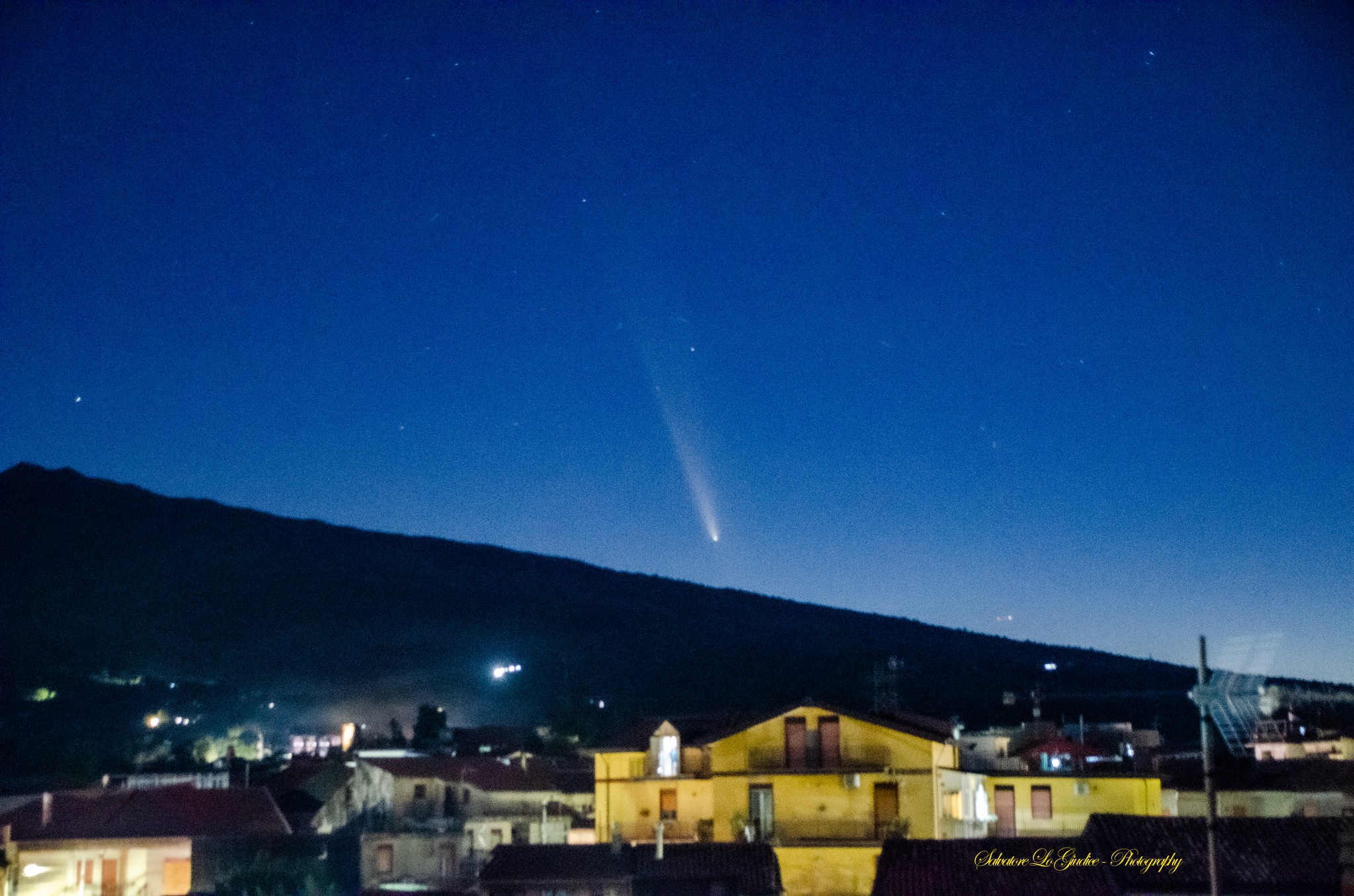 Da Reggio Calabria, invece, Katia Brianti ha immortalato la meraviglia della cometa da Gallico Marina, sul cielo occidentale oltre lo Stretto di Messina e i monti Peloritani: