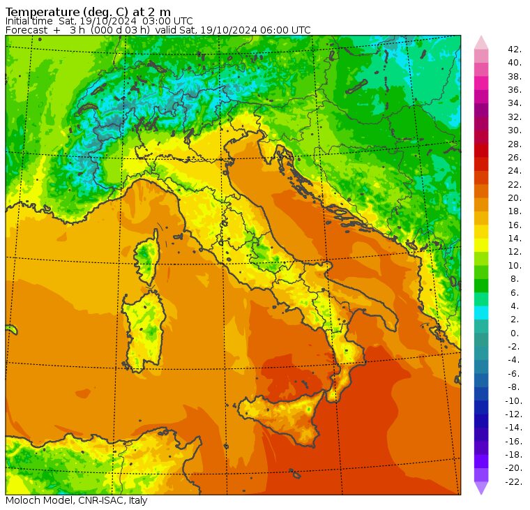 - +19°C a Termoli, Barletta, Bisceglie, Bari, Taranto, Lecce, Catanzaro, Messina, Catania
