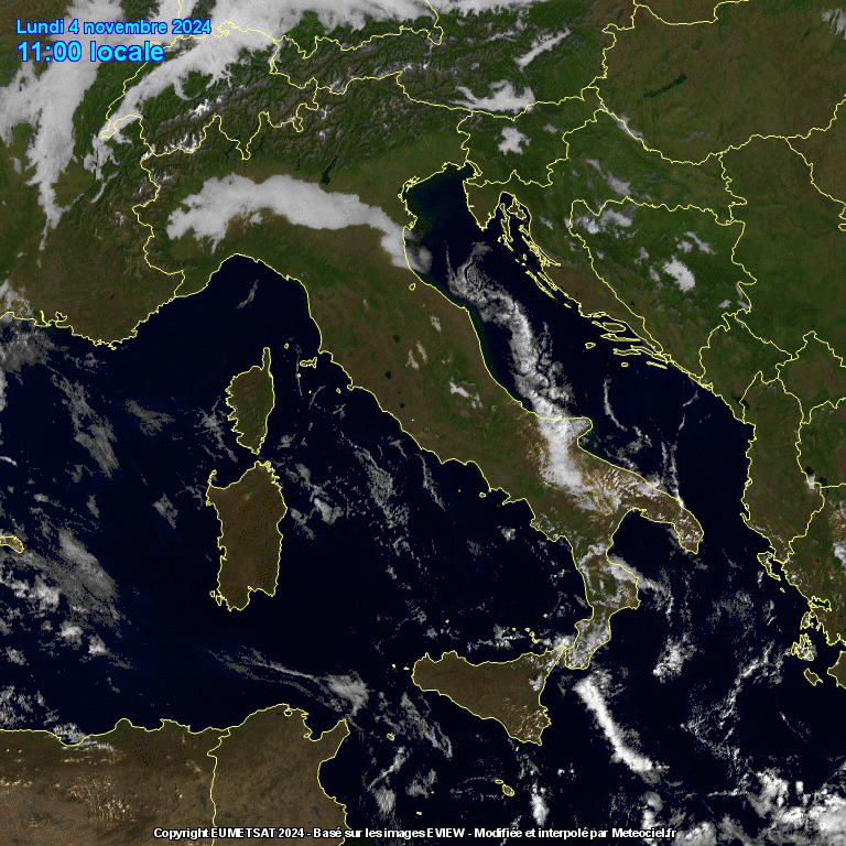 Si tratta di una circolazione fresca e umida che si può già vedere ad occhio dalle immagini satellitari, con la nuvolosità diffusa sul medio e basso Adriatico, soprattutto in Puglia, e con le nubi in formazione tra Calabria e Sicilia: