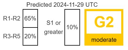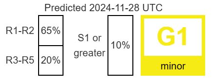 Tra oggi e domani, 28 e 29 novembre, potrebbe verificarsi una tempesta geomagnetica classe G2, secondo le previsioni dello Space Weather Prediction Center della NOAA. La causa è un’espulsione di massa coronale (CME), un’enorme nube di plasma e campi magnetici lanciata nello Spazio dal Sole, in questo caso da un filamento magnetico collegato alla macchia solare AR3901, che ha generato un’eruzione il 25 novembre.