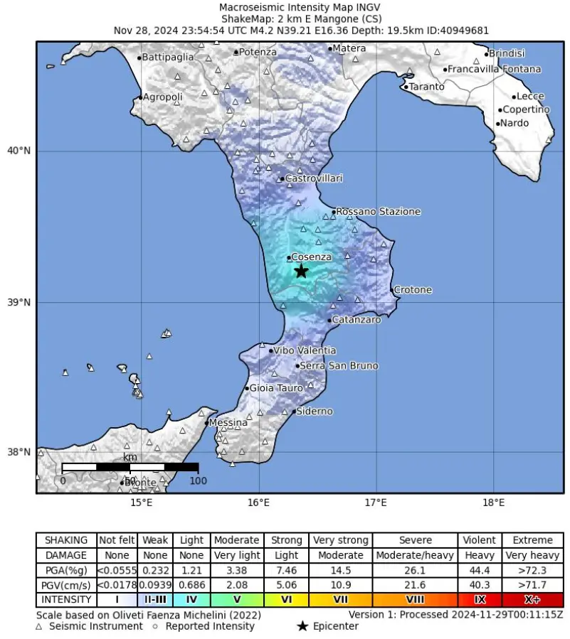 Terremoto con epicentro nel Distretto Sismico: Mangone – Cosenza