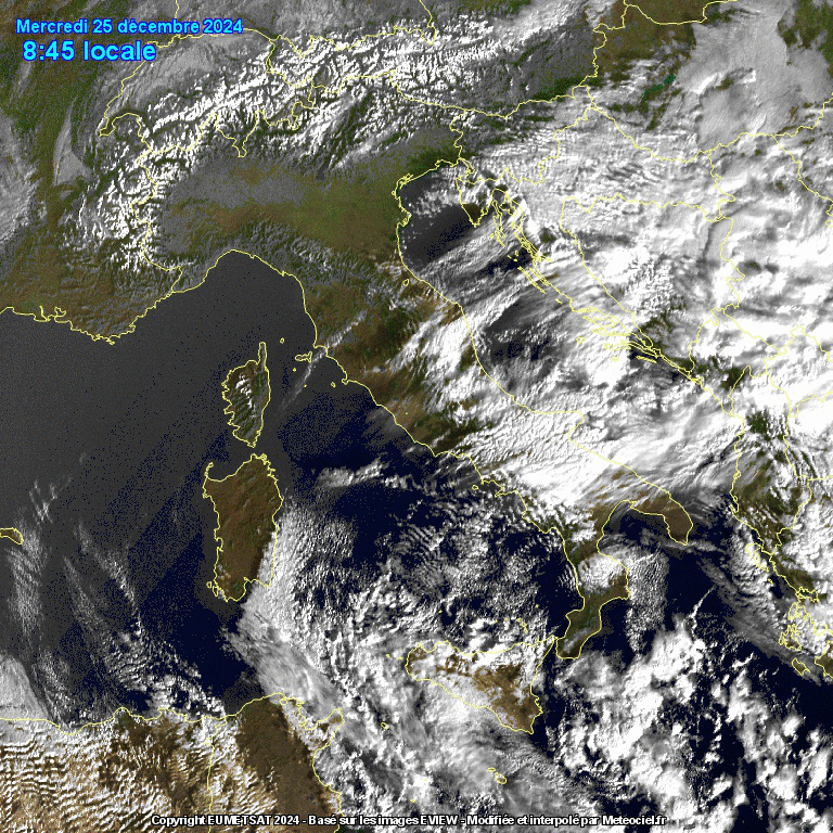 Il Ciclone che ha provocato questo maltempo è adesso in fase di attenuazione: la tempesta si sta allontanando verso la Grecia e persistono le ultime precipitazioni residue nel medio e basso Adriatico, tra Abruzzo, Molise e Puglia, coinvolgendo anche le zone interne di Campania e la Basilicata settentrionale, e all’estremo Sud la Sicilia settentrionale. Abbiamo invece ampie schiarite sulle Regioni Tirreniche, nel medio e alto Adriatico, nel Salento e in Calabria, oltre che nella Sicilia centro-meridionale, come mostra l’immagine satellitare. Sole pieno anche in Sardegna, dopo un risveglio freddo: