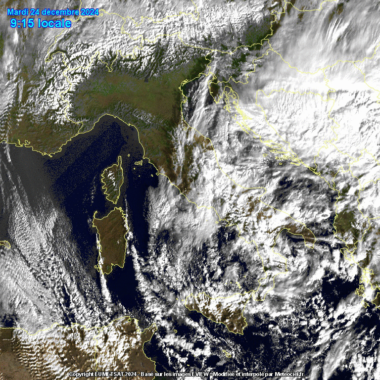 Le immagini satellitari mostrano la circolazione Ciclonica con il minimo nel Golfo di Taranto, la Taranto Low di cui parliamo da giorni: